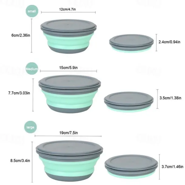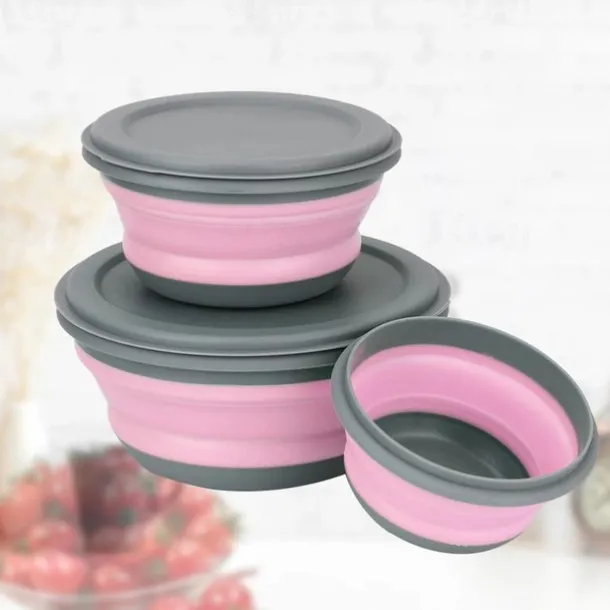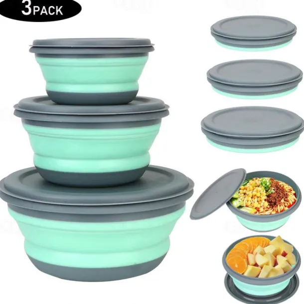 3pcs/set Silicone Folding Lunch Box With Lid Portable Picnic Camping Bowl Set Kitchen Tableware Kit Foldable Fruit Salad Bowl