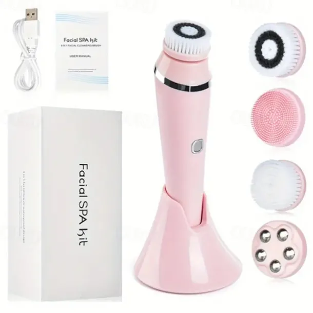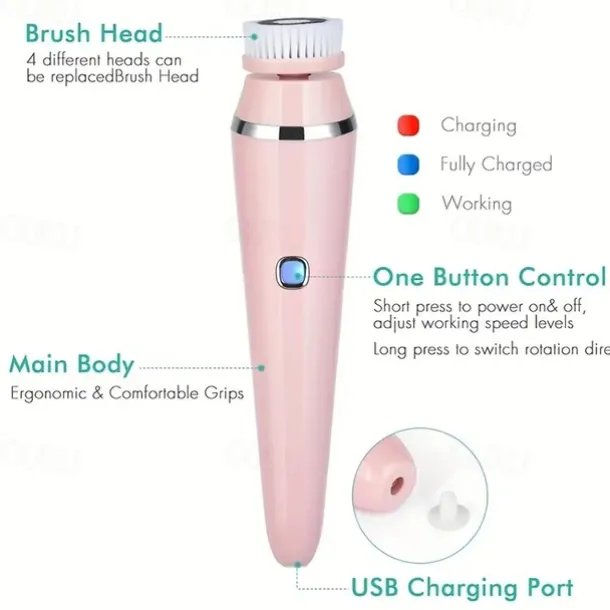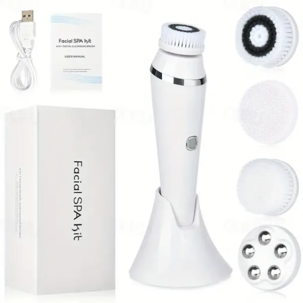 4-in-1 Electric Facial Cleansing Brush Facial Massager Facial Kit Set Face Wash Brush Facial Machine Exfoliating Brush And Face Massager Skin SPA Kit Waterproof Blackhead Acne Removal Pore Clean