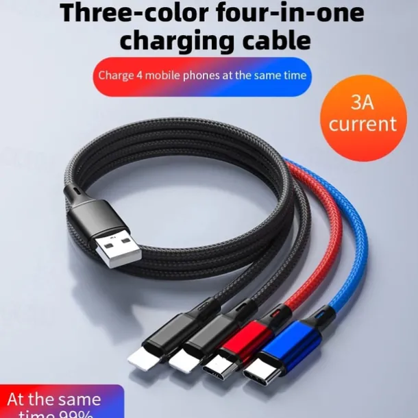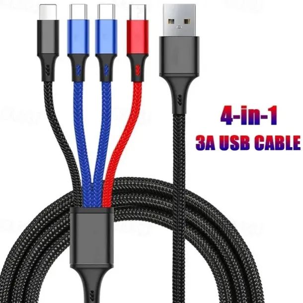 4 In 1 USB Cable For iPhone 3 In 1 USB A To Micro USB/Type C/8 Pin Charger Cable 3A Fast Charging Cabl For Huawei Samsung Xiaomi