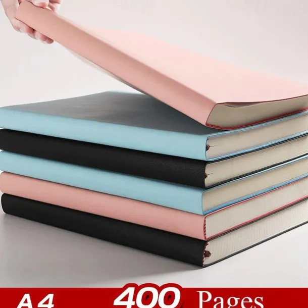 400 Pages A4 Notebook College Student Art Exquisite Thickened Large Notepad A5 Office High-end Pu Leather Work Conference Record Book Horizontal Line Diary