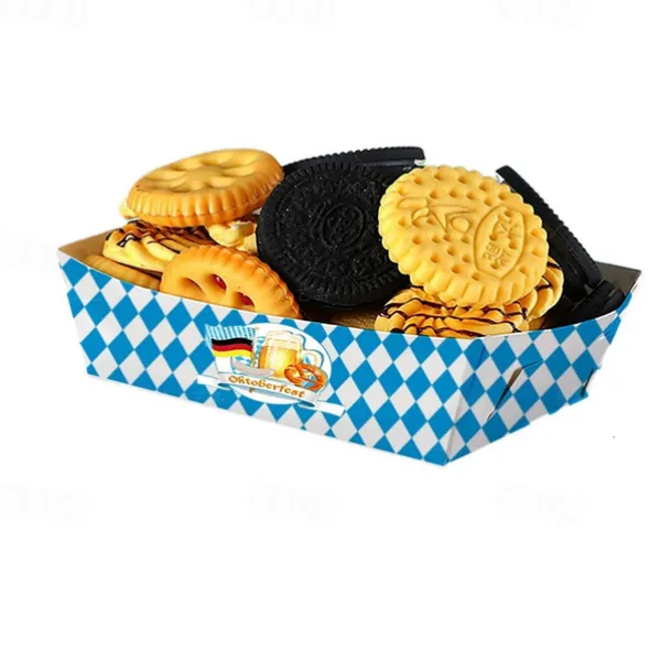 40Pcs Oktoberfest Party Supplies German Party Bavarian Flag 4 Corner Food Boxes Paper German Beer Festival Snack Trays Disposable Food Trays for Beer Festival Party Decorations Supplies Favors