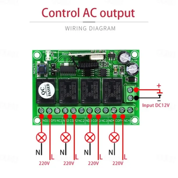 433Mhz Universal Wireless Remote Control Switch DC 12V 4CH relay Receiver Module with 4 Channel RF Remote