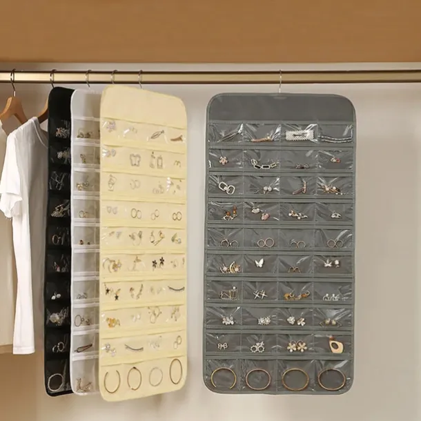 48Grids Hanging Jewelry Storage Earrings Necklace Bracelet Hanging Transparent Bag With Compartments Holder Organizer