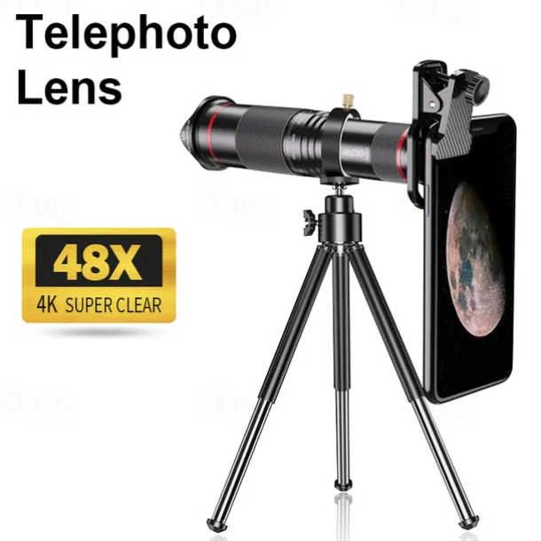 1. Introducing our new and improved high-quality optical 48X telescope zoom lens monocular with a mini tripod. Ideal for fulfilling all your photography needs.