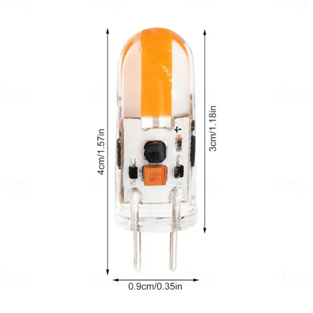 Quantity: 4pcs, LED Beads Quantity: 1, Light Color: Warm White, White, Type: LED Bi-pin Lights, LED Corn Lights, LED Spotlight, Wattage (W): 5, Voltage (V): 12, Initial Lumens (lm): 500, Color Temperature (k): 3000, Primary Application: Home / Office, Children’s Room, Kitchen, Hallway / Stairwell, Bulb Shape: T, LED Type: COB, Bulb Base: GY6.35,