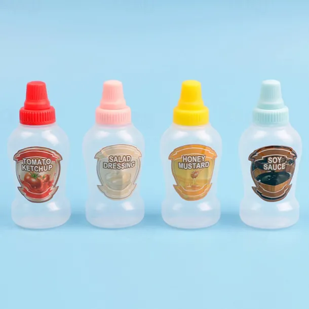 4pcs Mini Condiment Squeeze Bottles 40ml Honey/Ketchup/Soy Sauce/Salad Dressing Dispensers Lunchbox Squeezable Containers Jars