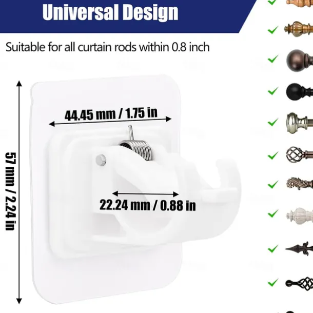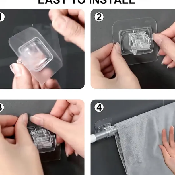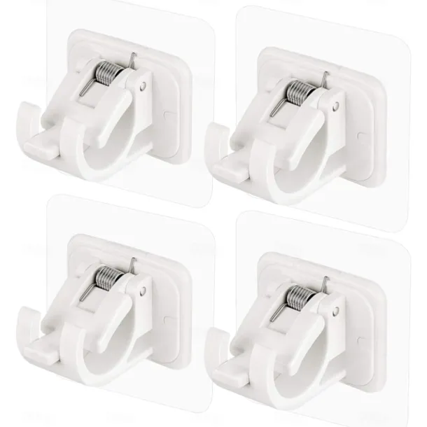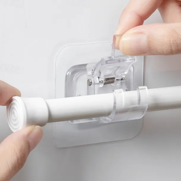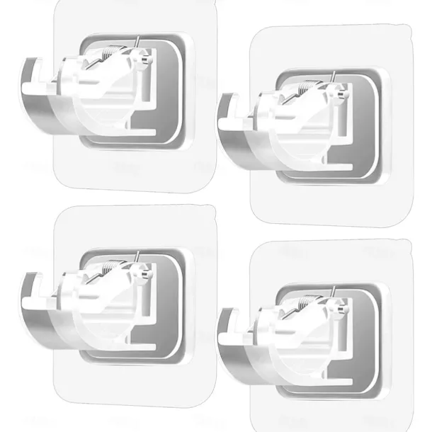 4Pcs Self Adhesive Curtain Rod Bracket Punch-free Curtain Rod Clips Nail-Free Hook Adjustable Shower Curtain Rod Hanging Holder