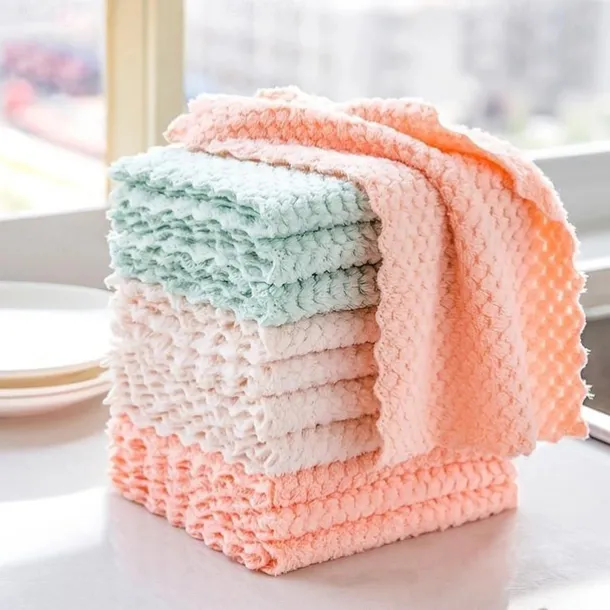 5/10pcs Kitchen Dishcloth Rag Non-Stick Oil Pineapple Plaid Dish Towel Double-Sided Absorbent Thickened Scouring Pad