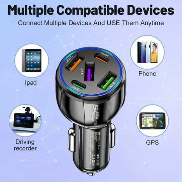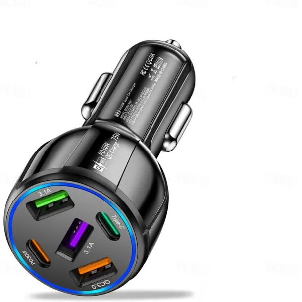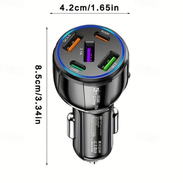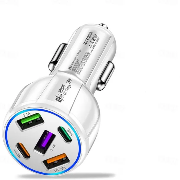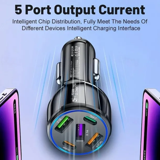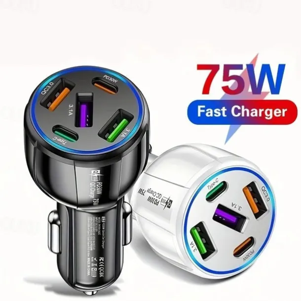 5-in-1 Dual line Car Charger 75W Quick Charge One Tow Five 3USB2PD Car Phone Charger