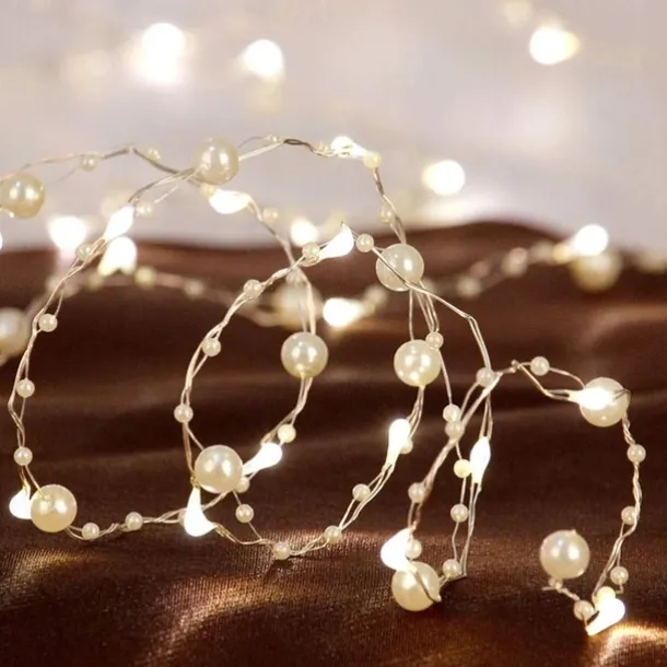 5m 50leds Pearl Wire Copper String Lights Battery Powered Fairy Lamp Christmas Wedding Party Home Garland Holiday Decoration