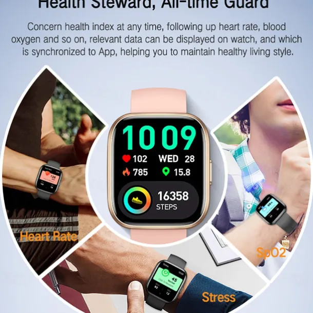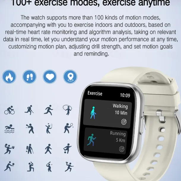 696 P114 Smart Watch 1.85 inch Smart Band Fitness Bracelet Bluetooth Pedometer Call Reminder Sleep Tracker Compatible with Android iOS Women Men Hands-Free Calls Message Reminder IP 67 40mm Watch Case