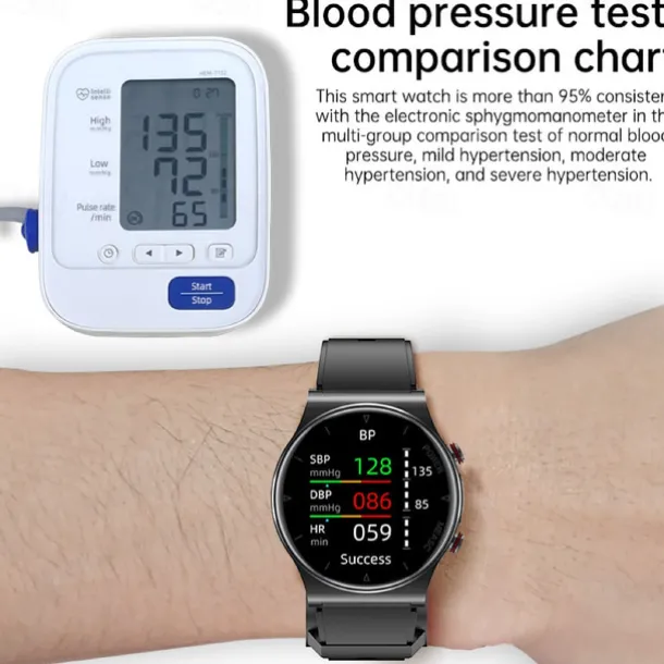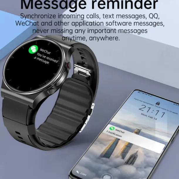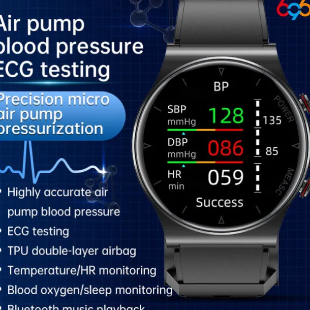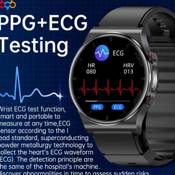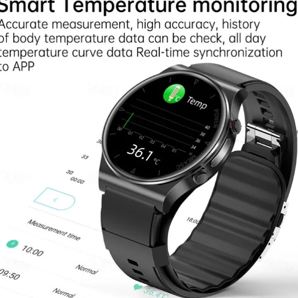 696 P70 Blood Glucose Watch Smart Watch 1.32 inch Smart Band Fitness Bracelet Bluetooth ECG+PPG Temperature Monitoring Pedometer Compatible with Android iOS Men Message Reminder IP 67 43mm Watch Case