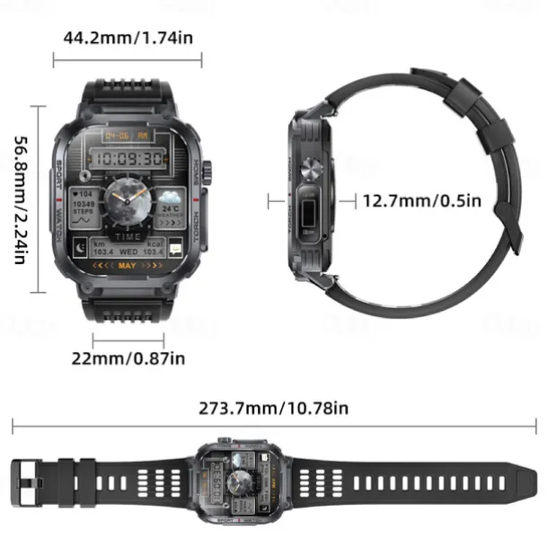 696 S320B Smart Watch 2.02 inch Smart Band Fitness Bracelet Bluetooth Pedometer Call Reminder Sleep Tracker Compatible with Android iOS Men Hands-Free Calls Message Reminder Step Tracker IP 67 44mm