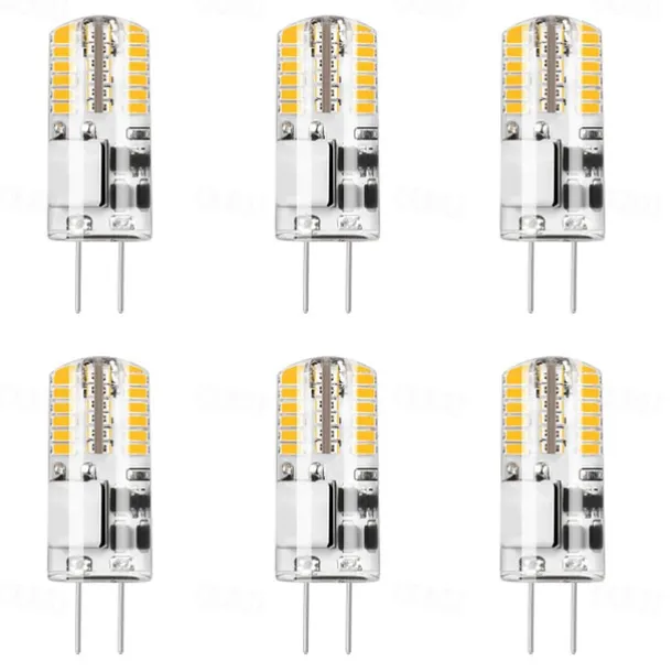 Quantity: 6pcs, LED Beads Quantity: 48, Light Color: Warm White, White, Type: LED Bi-pin Lights, Features: Creative, Cute, Decorative, Cool, Christmas Wedding Decoration, Wattage (W): 5, Voltage (V): 12, Initial Lumens (lm): 500, Color Temperature (k): 3000, Primary Application: Home / Office, Children’s Room, Kitchen, Living Room / Dining Room, Bulb Shape: T, LED Type: SMD 3014, Bulb Base: G4, Net Weight (kg): 0.027,