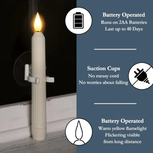 6pcs LED Taper Candles Flame Led Electronic Candle Warm Yellow Light with Suction Cups for Christmas Holidays New Year Window Fireplace Decoration for Halloween