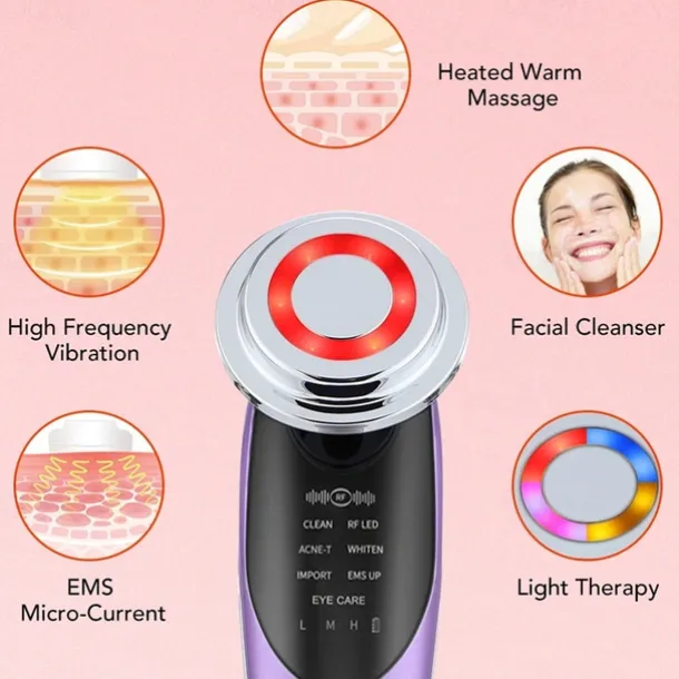 7 in 1 Facial Lifting Device EMS Radiofrequency Micro Current Rejuvenation Facial Massager Light Therapy Anti-aging Anti-wrinkle Beauty Instrument