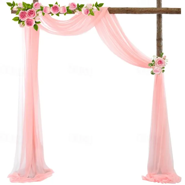 75*600cm Arched Door Gauze Curtain Outdoor Forest Lawn Wedding Decoration Hanging Curtain Wedding Decoration Cloth Curtain Pearl Chiffon Curtain