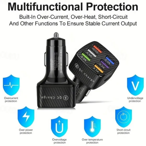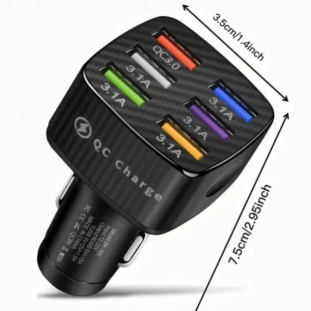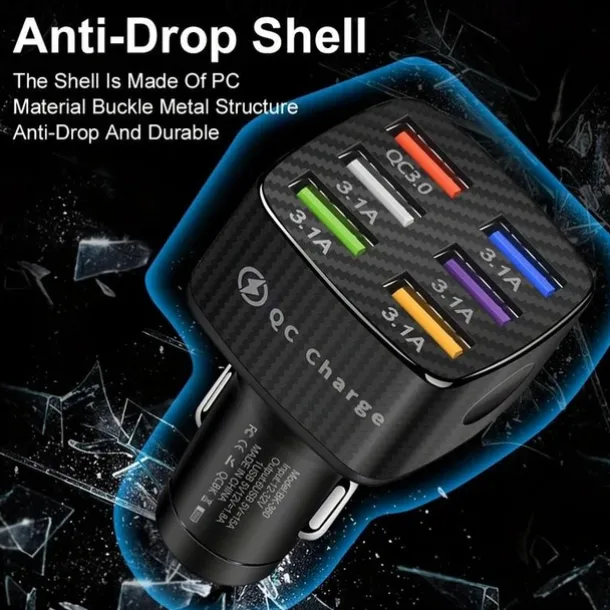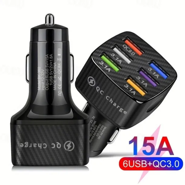 75W Fast Charging 6-Ports QC3.0 & 5 USB 15A Car Charger Adapter Fast Charging Portable Phone Adapter For Android Charger