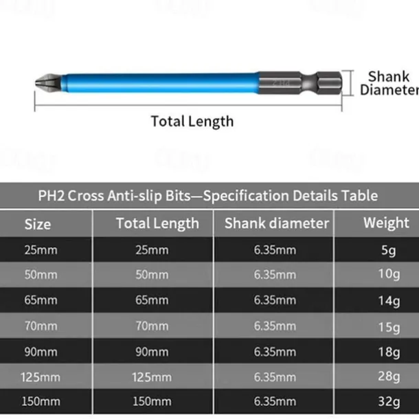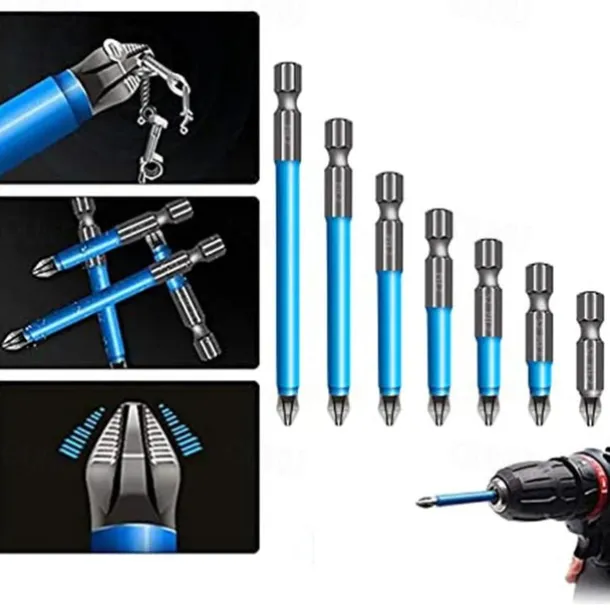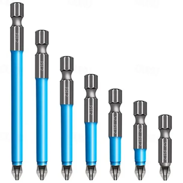 7pcs/set S2 Anti Slip Long Reach Screwdriver BitsBits Precision PH2 Single Cross Head Bits Magnetic Phillips Screwdriver Bits for 25~150mm Screw Hex Shank Screwdriver Bits