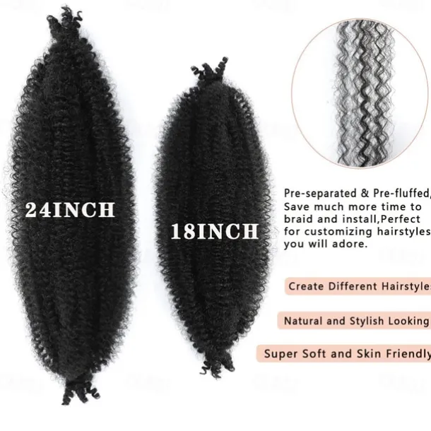 8 Packs Pre-Separated Springy Afro Twist Hair Suitable for Damaged Soft Locs Synthetic Marley Twist Braiding Hair