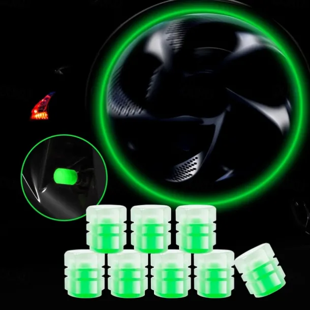 8 PCS Luminous Wheels Cap Tire Valve Stem Glow Luminous at Night Air Caps Cover Fluorescent Illuminated Auto Car Wheel Valve Stem Caps Cover for SUV Motorcycles Truck Vehicle
