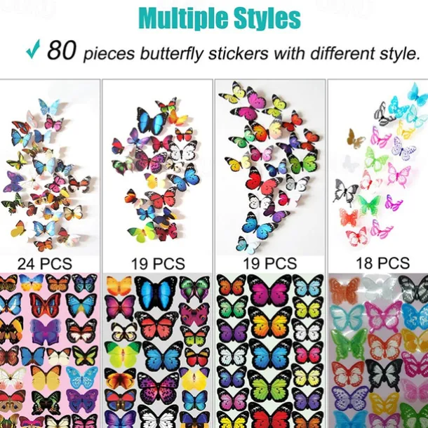 80 PCS 3D Butterfly Wall Decor Butterfly Wall Decals DIY Art Decor Crafts Removable Mural Stickers Butterfly Decorations for Home Room Bedroom Nursery Decor