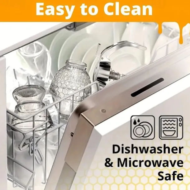 8oz Capacity Honey Dispenser with No-Drip Maple Syrup & Honey Comb Shaped Pot – Perfect for Home Storage!