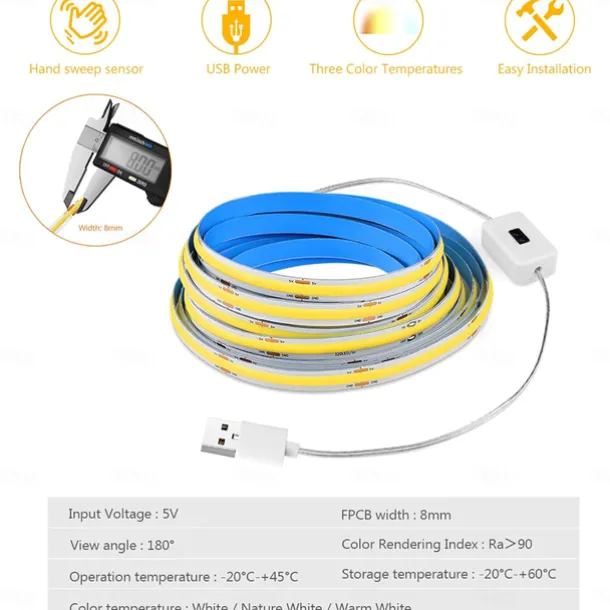 LED Beads Quantity: 480-1200, Light Color: Warm White, White, Netual White, Power Supply: USB, AA Batteries Powered, Type: Flexible LED Light Strips, Style: LED Strip Light, Features: Indoor, USB, Body Sensor, Quantity: 1 set, 1PC, Wattage (W): 12, Voltage (V): Batteries Powered, USB Powered, Length: 1m, 1.5m, 2m, 2.5m, Mode: Motion Sensor, CRI: >80, LED Type: COB, Batteries Included: No, IP Rating: IP20, Control Mode: Body Sensor, Suitable Rooms: Indoor, Width: 8mm, Length Range: < 5m (16.4ft),
