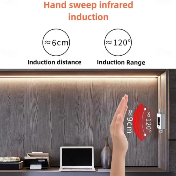 Adjustable Brightness Hand Wave Activation USB COB LED Light Strip 1-2.5m AA Battery Box Manual Scan Sensor LED Tape Light Lighting Suitable for Bedroom Backlit Kitchen Bedroom Mirror Wardrobe Display