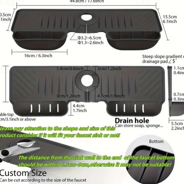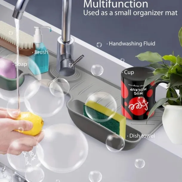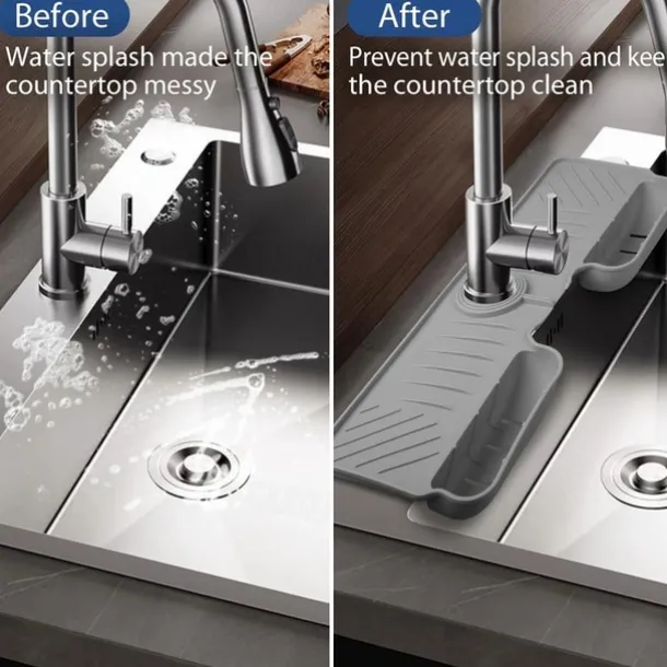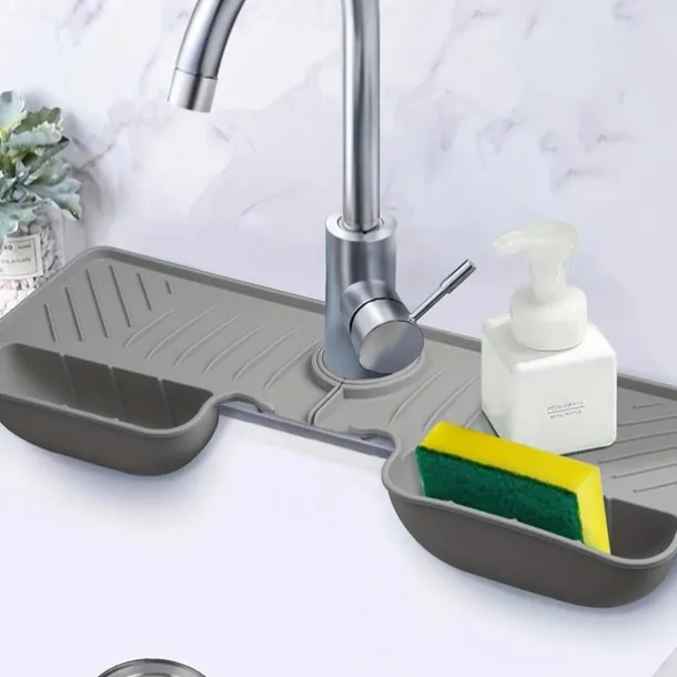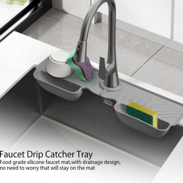 Adjustable Silicone Sponge Holder, Faucet Water Catcher Mat, 2 IN 1 Absorbent Faucet Splash Mat, Draining Faucet Water Catcher Mat, Sponge Holder Over Faucet Sink Organizer, Kitchen Bathroom Sink Acce
