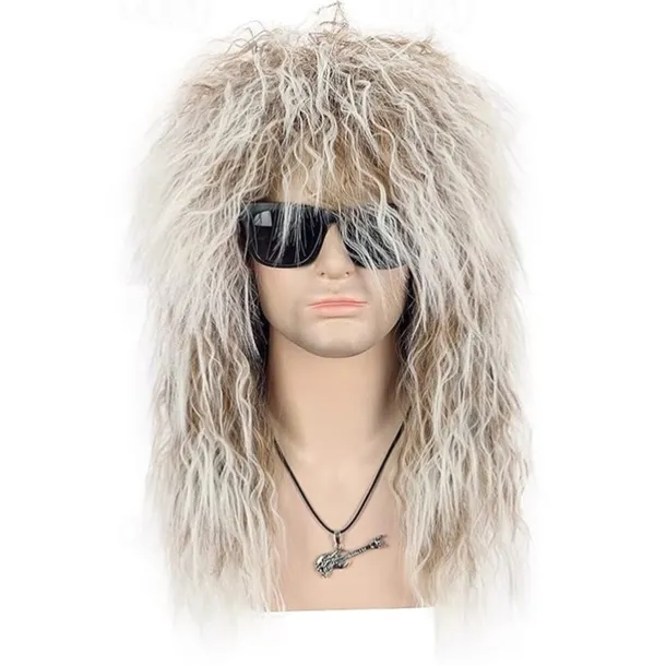 Adult Men Women Long Curly Wig 70s 80s Rocker Mullet Halloween Costume Cosplay Wig For Carvinal