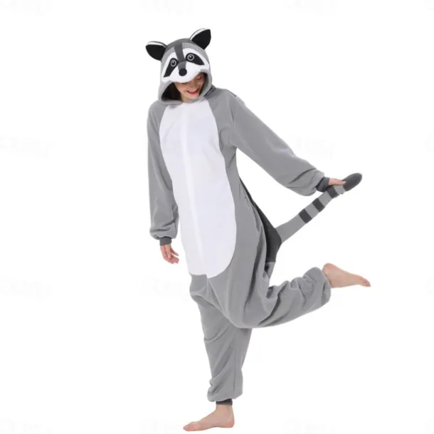 Adults’ Animal Nightwear Onesie Costume Carnival Costume Raccoon Onesie Pajamas Kigurumi Pajamas Funny Costume For Men and Women Christmas Carnival Cartoon