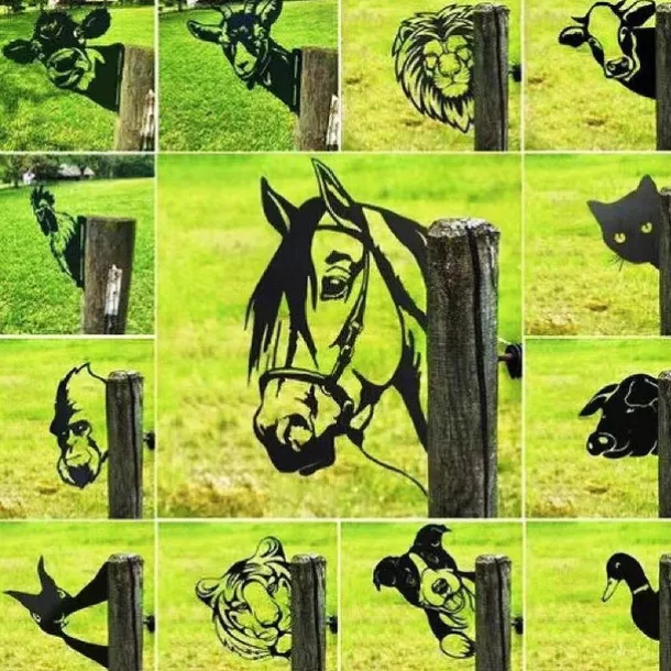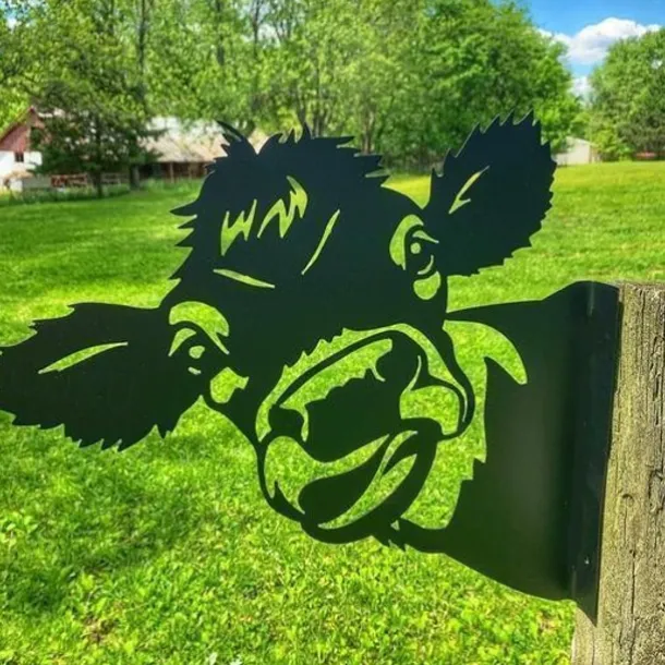 Animals Metal Garden Art Decor, Funny Peeping Cow Metal Wall Sculptures Weatherproof Wrought Iron Art Cow Sign Outdoor Garden Farmhouse Decor Cow Wall Decor