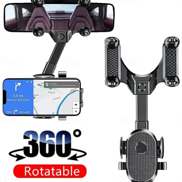 Auto Rearview Mirror Phone Holder in Car Mount Stand for CellPhone Car Mobile Support Rotating Adjustable Car SmartPhone Holder Compatible with 4-7 Cell Phones Phone Accessory