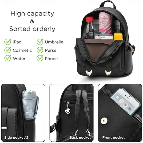 Backpack Purse for Women Large Capacity Leather Shoulder Bags Cute Mini Backpack for Girls,Black, Back to School Gift