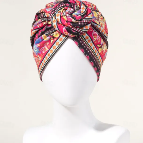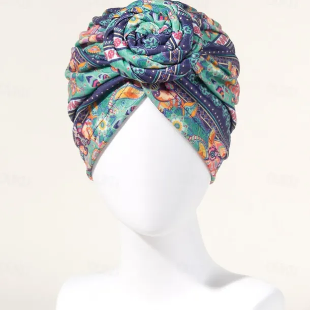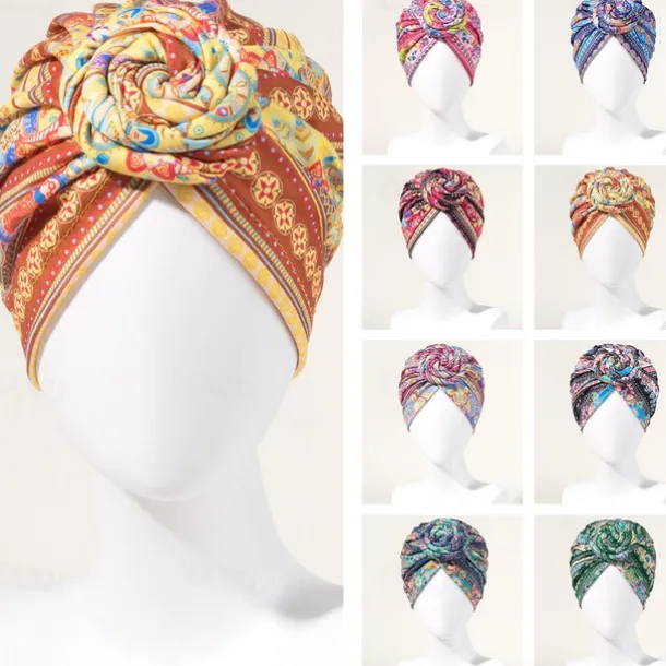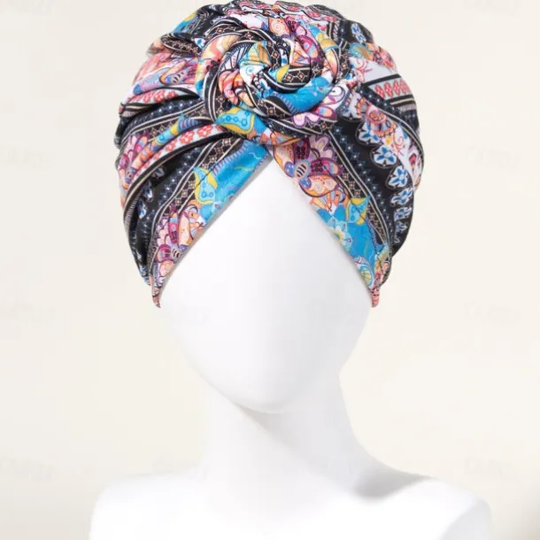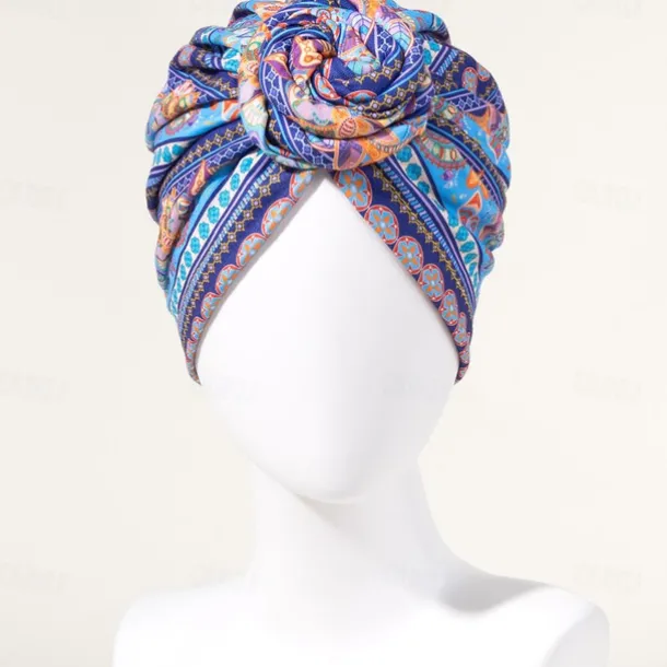 Bath Cap Twisted Retro Print Stretchy Hide Hair Breathable Bohemia Pre-Tied Bonnet Beanie Hat Women’s