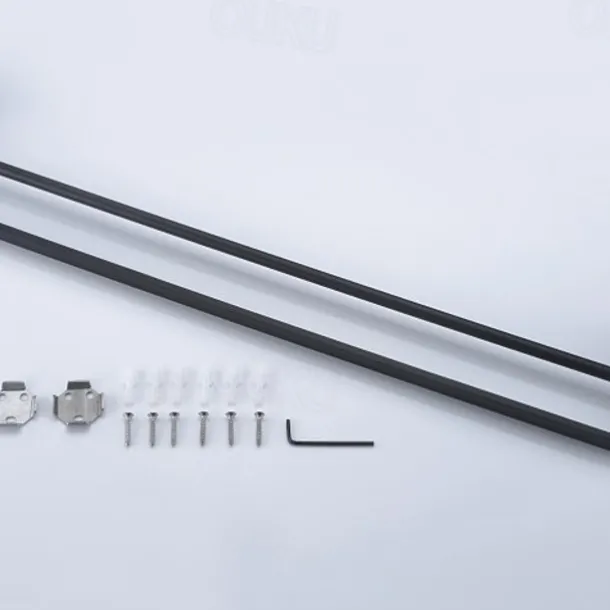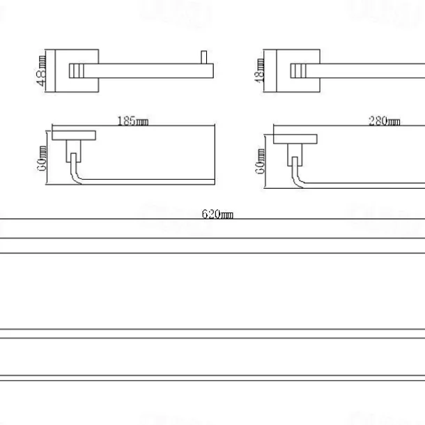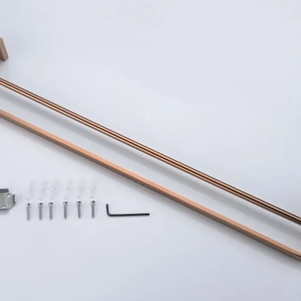 – Includes robe hook, double bar towel rack, toilet paper holder, and towel ring