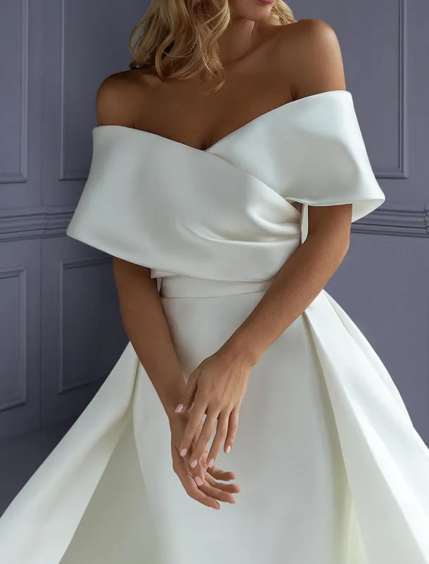 Beach Formal Wedding Dresses Mermaid Sweetheart Off Shoulder Sleeveless Sweep / Brush Train Satin Bridal Gowns With Solid Color