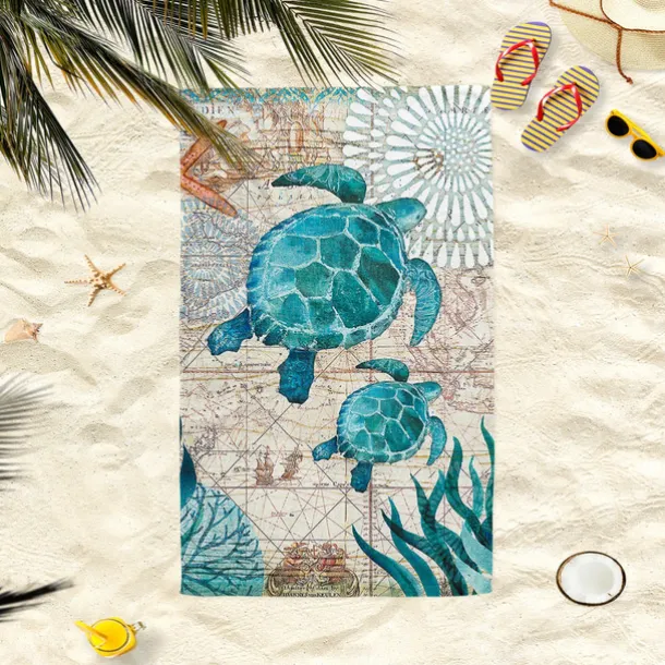 Beach Towel Quick-Drying Vintage Seahorse Sea Turtle Soft Microfiber Sand Pool Bath Outdoor Travel Towel Camping Swimming Yoga Sports Girls Women Men Adults