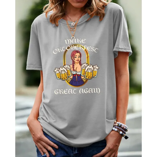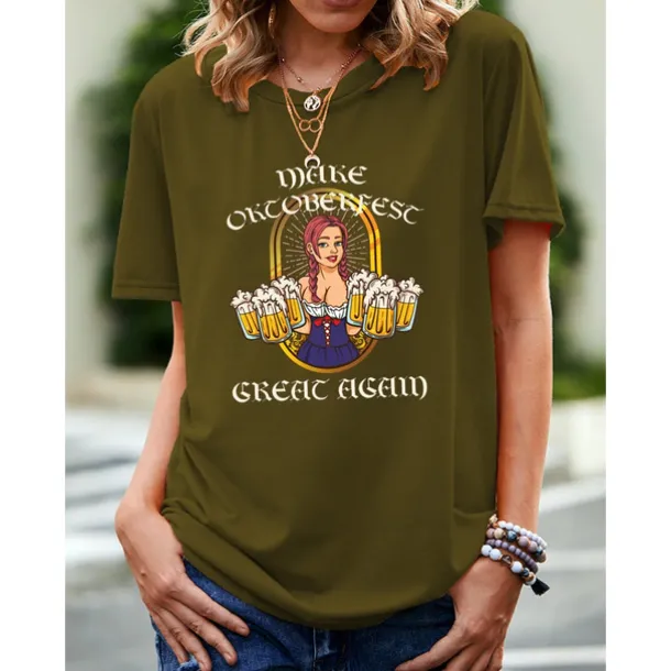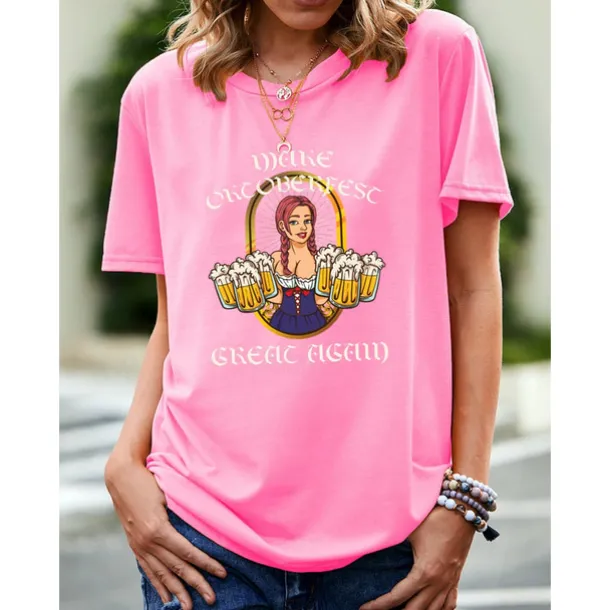 Beer Cosplay Costume T-shirt Print Classic Street Style For Women’s Adults’ Carnival Oktoberfest Beer Hot Stamping Party Casual Daily