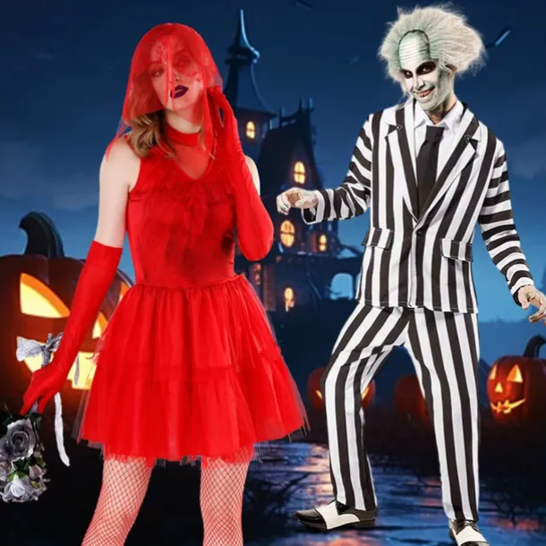 Beetlejuice Beetlejuice 2 Ghost Bride Lydia Deetz Cosplay Costume Halloween Group Couples Costumes Adults’ Men’s Women’s Horror Wedding Party Halloween Carnival Easy Carnival Costume