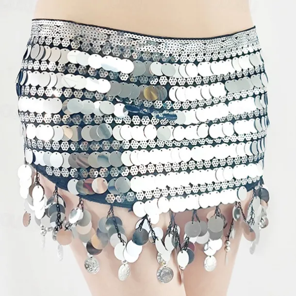 Belly Dance Belt Gold Coin Pure Color Splicing Women’s Performance Training High Polyester Sequined