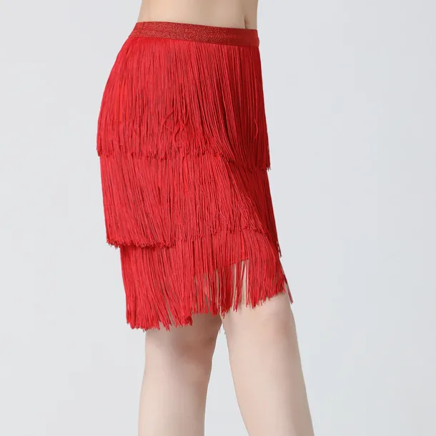 Belly Dance Latin Dance Skirts Fringed Tassel Pure Color Splicing Women’s Training Performance High Spandex
