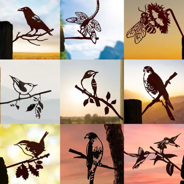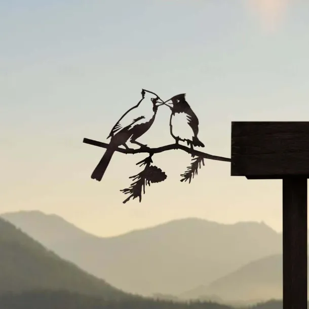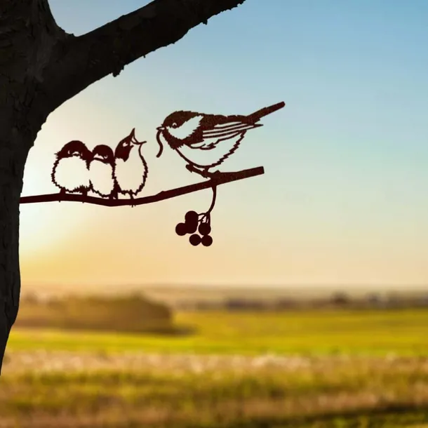 Birds Metal Garden Art Decor, Funny Metal Wall Sculptures Weatherproof Wrought Iron Art Sign Outdoor Garden Farmhouse Decor Wall Decor