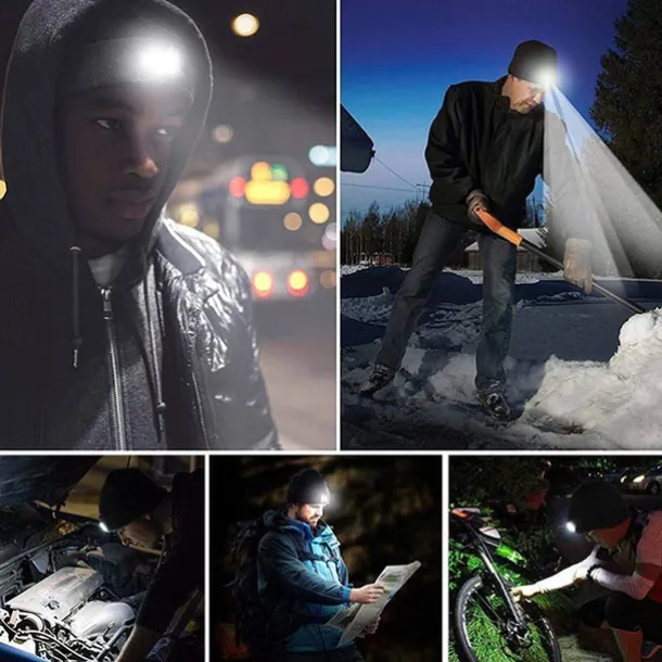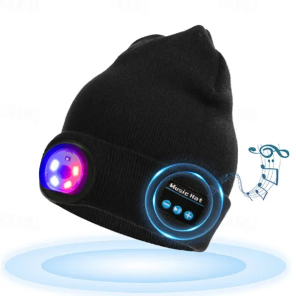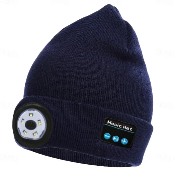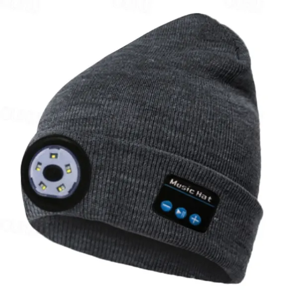 Bluetooth Beanie Hat with Lights Microphones Rechargeable Headlamp Cap Wireless Headphones Gifts for Men Women Dad Teen