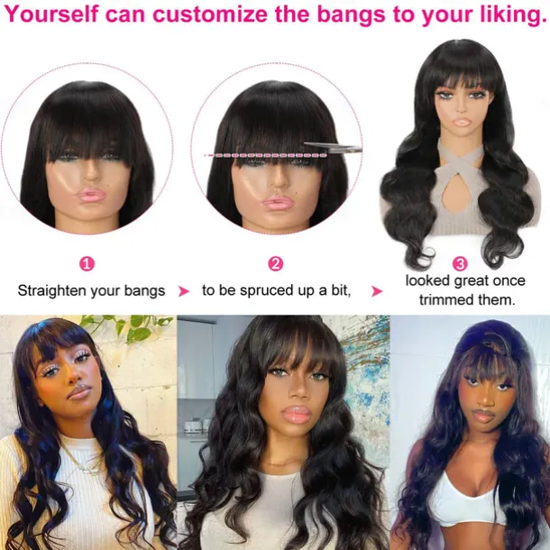 Body Wave Wigs with Bangs Human Hair Wig for Black Women Natural Color 150% Density Brazilian Virgin Hair None Lace Wigs Machine Made Wig