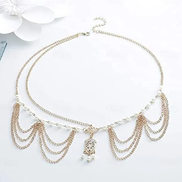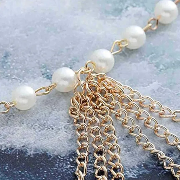 Boho Pearl Hair Chain Gold Tassel Headpiece Gypsy Festival Wedding Hair Accessories for Women