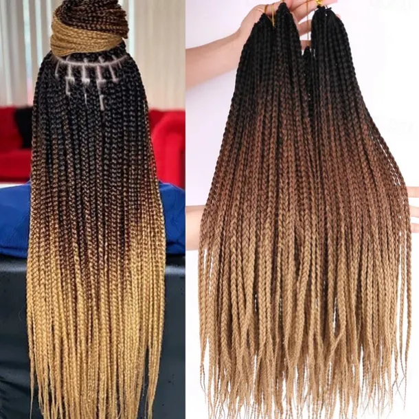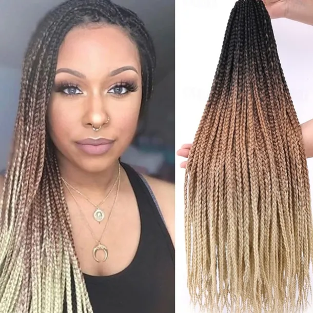 Box Braids Crochet Hair 6 Packs 24 Inch Ombre Dark Roots Honey Blonde 3X Goddess Senegalese Twist Tissage Fiber Kanekalon Braiding Hair Extensions 22 Strands/Pack 100g