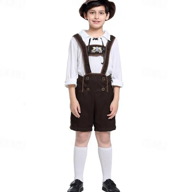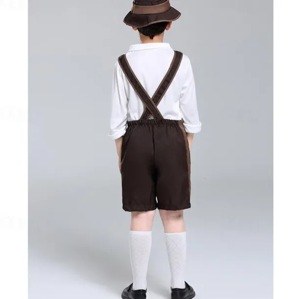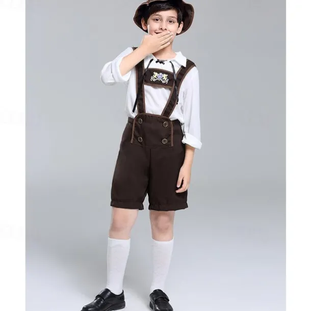 Boys Oktoberfest Costume Traditional German Beer Outfit Lederhosen Shirt Hat 3 Pieces Munich Bavarian Costume for Kids
