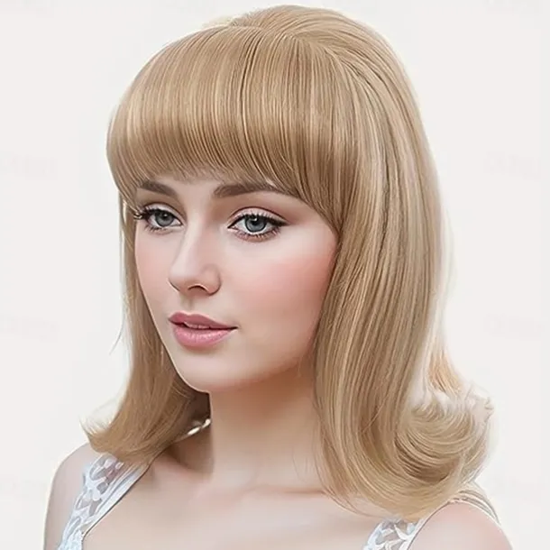 Brown 60s Retro Beehive Wigs for Women 70s Classic Style Cosplay Wig With Bang for Party Carnival Use Costume Cosplay Brown Highlight Halloween Wigs